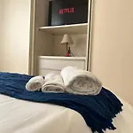 I den 44 m² stora lägenheten finns en bidé, en separat toalett och en dusch för din komfort. Du kan också utnyttja badrockar, badlakan och handdukar i badrummet.